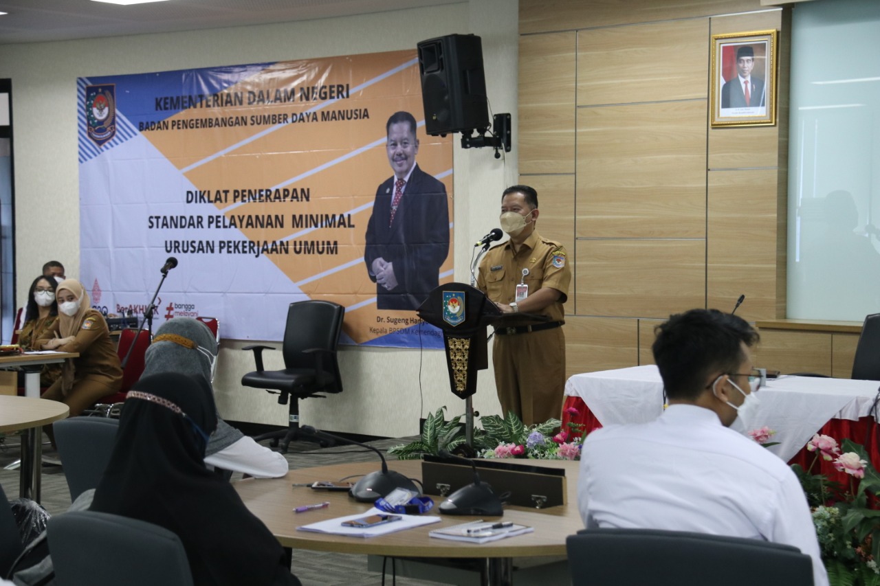 Badan Pengembangan Sumber Daya Manusia (BPSDM) Kementerian Dalam Negeri (Kemendagri) menggelar Pendidikan dan Pelatihan (Diklat) Penerapan Standar Pelayanan Minimal (SPM) Urusan Pekerjaan Umum.