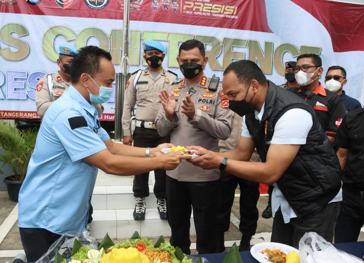 Acara berlangsung di halaman polresta Tangerang, Kamis (10/2/2022). Selain ramah acara tersebut juga diakhiri dengan pemotongan tumpeng yang diserahkan oleh Kapolres secara simbolis kepada para ketua organisasi wartawan.